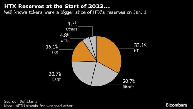 Within HTX’s reserves, Bitcoin (BTC) represents the largest portion, approximately 33%, as reported by DefiLlama. The TRX token from the Tron blockchain, launched by Sun in 2017, accounts for around 32%. HTX’s native exchange coin, HT, makes up about 14%, followed by a Sun-associated token named stUSDT, constituting 12% of the reserves.