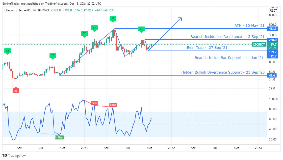 A recent bear-trap candlestick pattern on 27 September ’21 brings hope to LTC holders who have seen stunted returns and recovery compared to BTC and other ALT coins.