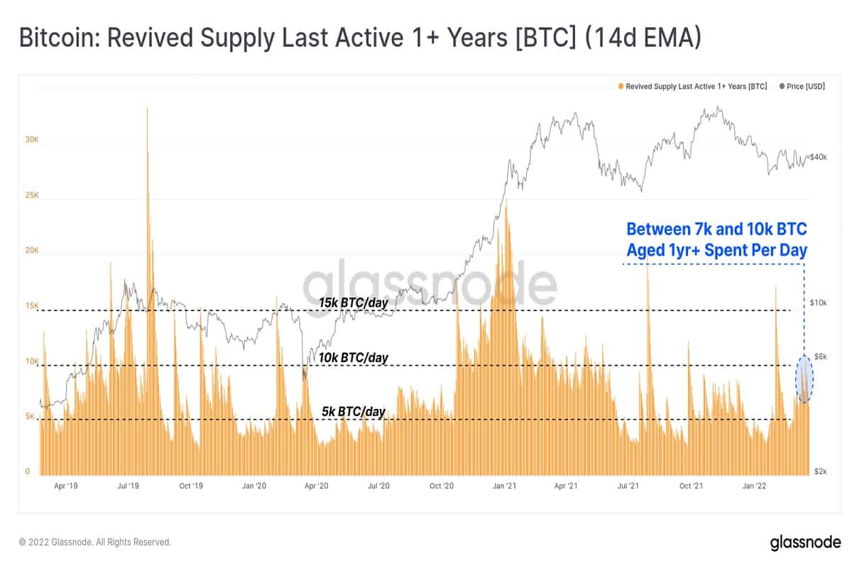 This shows that BTC holders are standing strong with the coin amid macro and geopolitical headwinds. The long-term holders are holding a huge amount of supply of BTC bought above $45,000. The report mentions that these investors are yet to sell suggesting strong sentiment persists.