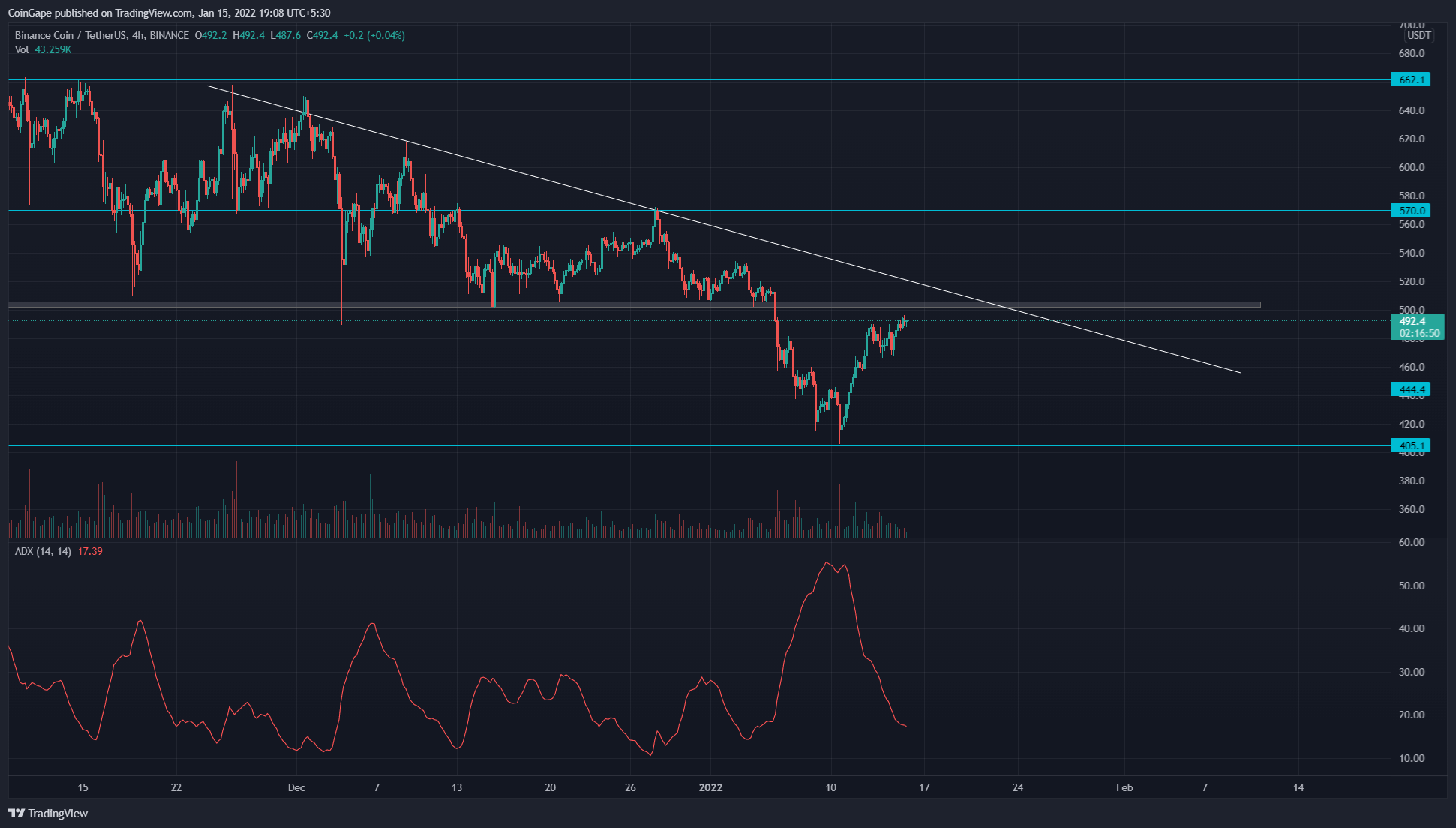 BNB Price Faces Combined Resistance From $500 And Descending Trendline