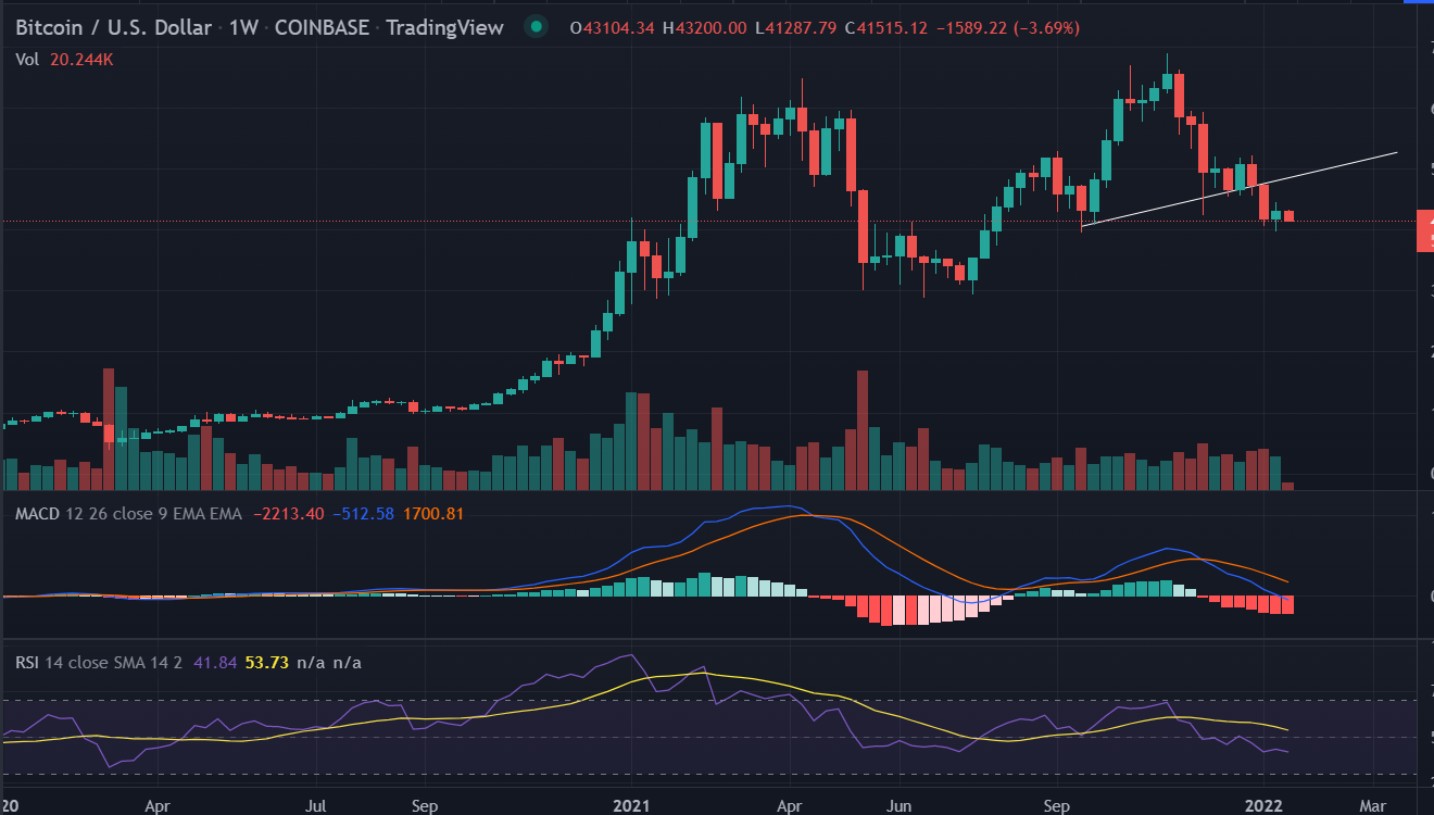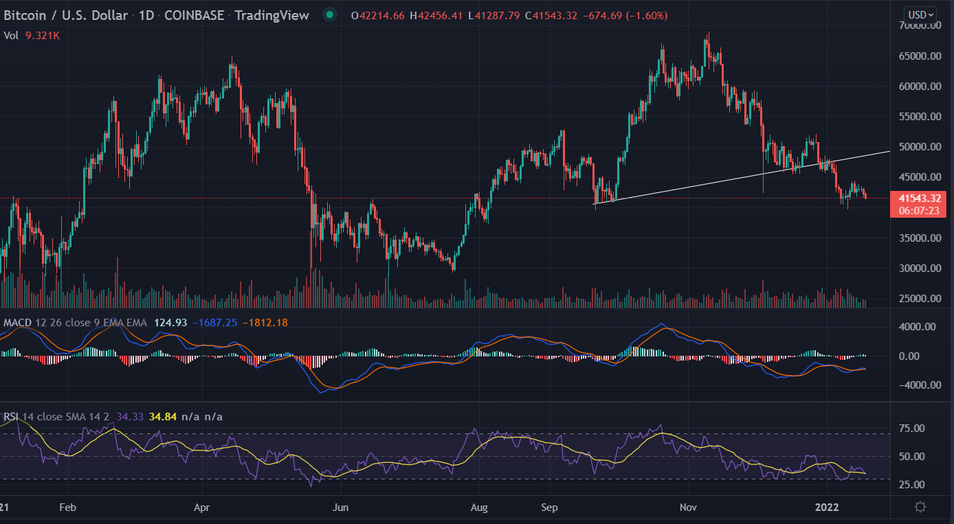 The daily chart reveals the daily Relative Strength Index (RSI) is trading in the oversold zone. A technical bounce if happens then immediate resistance hurdle at $45k.