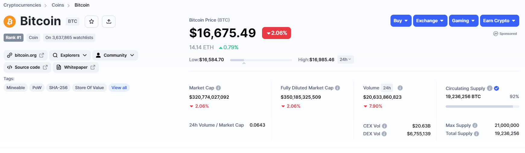 Today, the BTC price trades at the $16709 mark and shows power struggles to surpass the horizontal level of $16825. Thus, if the price shows sustainability below the mentioned $16825 or breaches the trendline, the Bitcoin price may drop 6.7% to revisit $15600.