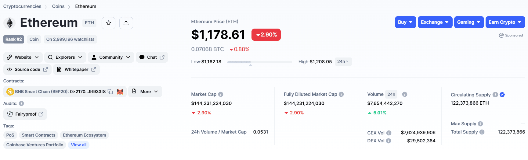 By the press time, the Ethereum price trades at $1180 with an intraday gain of 1.15%. The bullish candle backed by lesser volume indicates market participant is more interested in selling activity.
