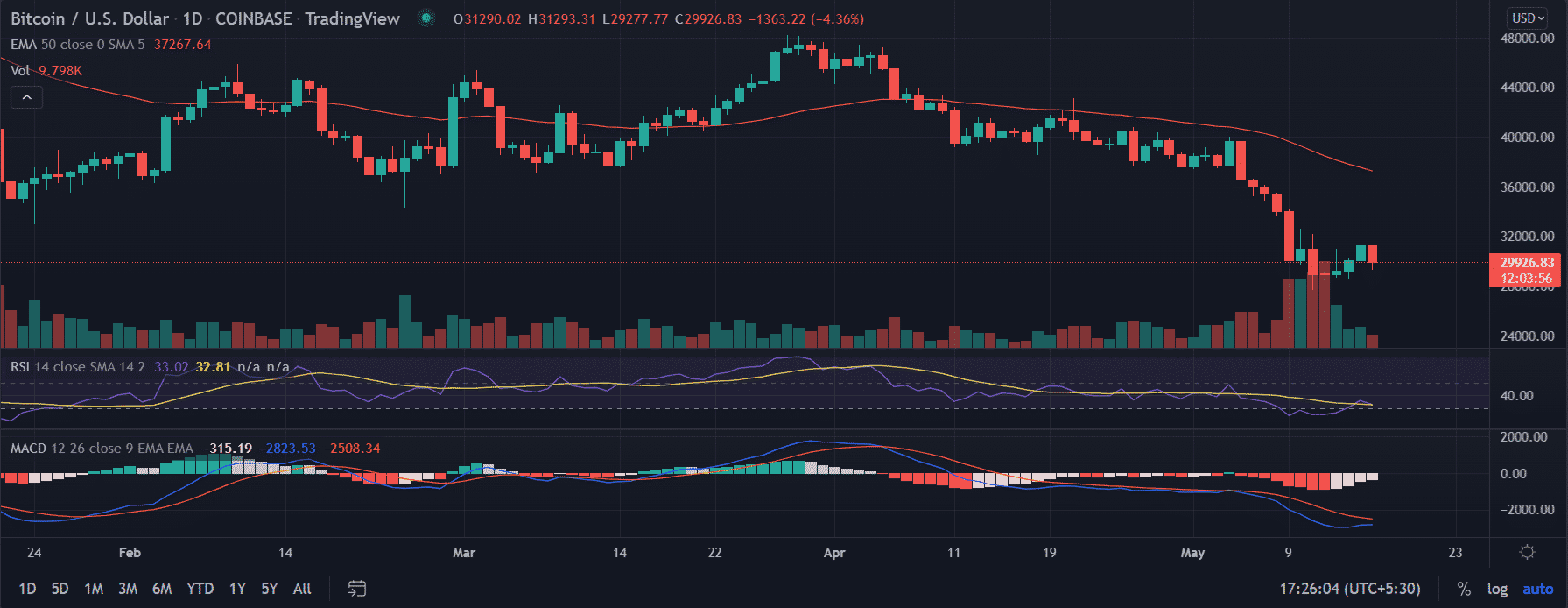 BTC price edges lower bucking the previous week’s late recovery. The price opened the trading session on a higher note but soon the upside fizzled out. BTC breaks below the $30,000 mark telling that the sellers are still looking for further liquidation.