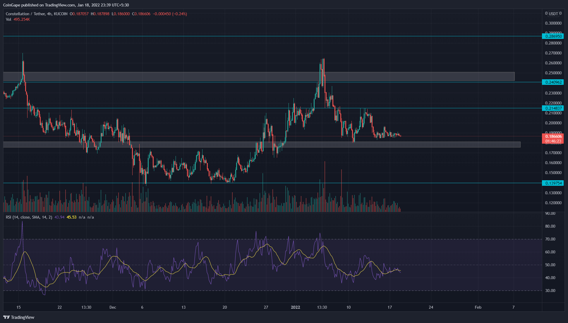 Rejecting from $0.24 resistance, the DAG price plummeted to the $0.18 support, losing around 23% in value. For almost two weeks, the coin price has been hovering above this support level, trying to acquire sufficient demand.