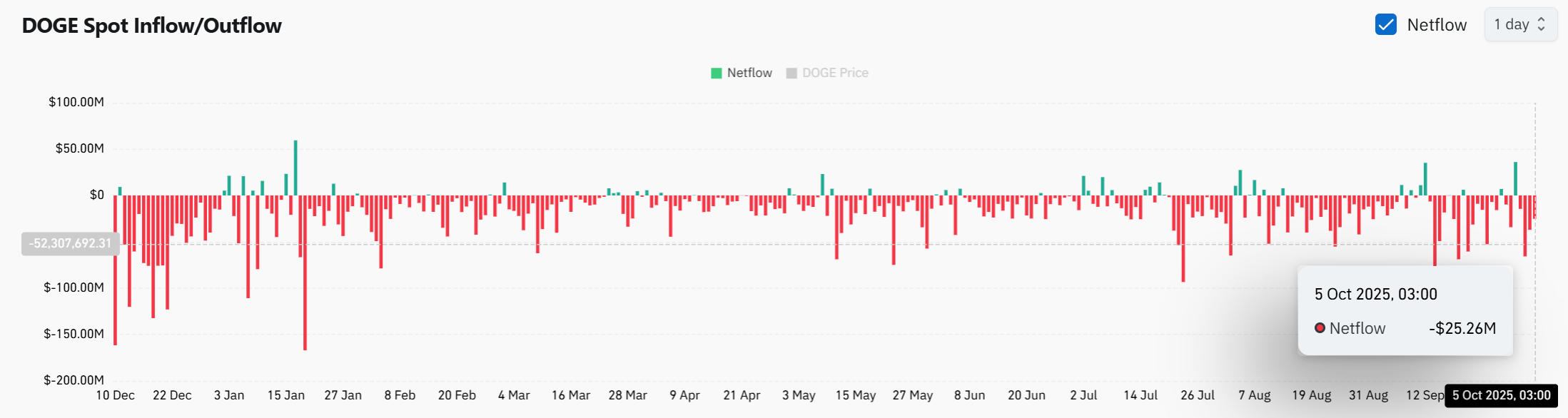 Meanwhile, CoinGlass analytics show net outflows exceeding $25 million at press time, indicating reduced selling pressure and growing accumulation across private wallets. This steady decline in exchange reserves often translates to tighter supply and potentially higher prices as demand remains active.