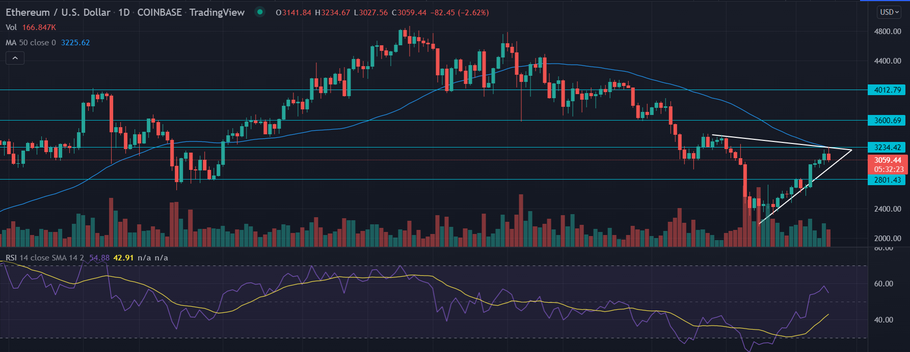 Alternatively, if the breakout happens toward the upper end then the first target could be found at the $3,600 horizontal resistance level. As ETH breached the mentioned level the sentiment would turn in the favor of bulls and could jump toward the psychological level of $4,012.