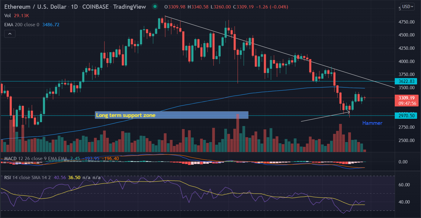 - ETH shows bullish interest from the long-term support zone of $2,900.