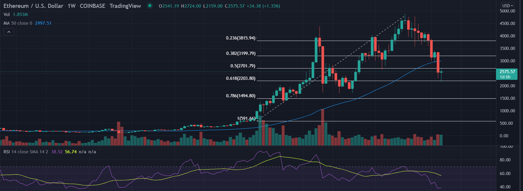 On the weekly charts, the Ethereum (ETH) price took support near 0.618% at $2,148. The formation of ‘Doji’ candlesticks give the buyers double confirmation that price could see an upside reversal from the current levels.