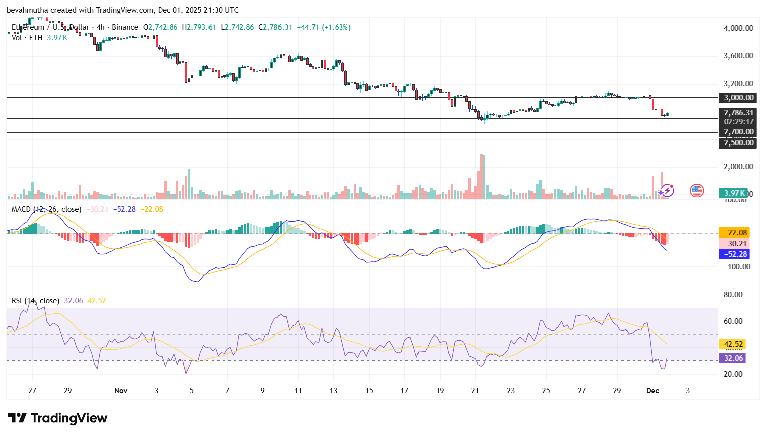 The latest Ethereum price traded at $2,738, signaling a strong bearish trend in the market.