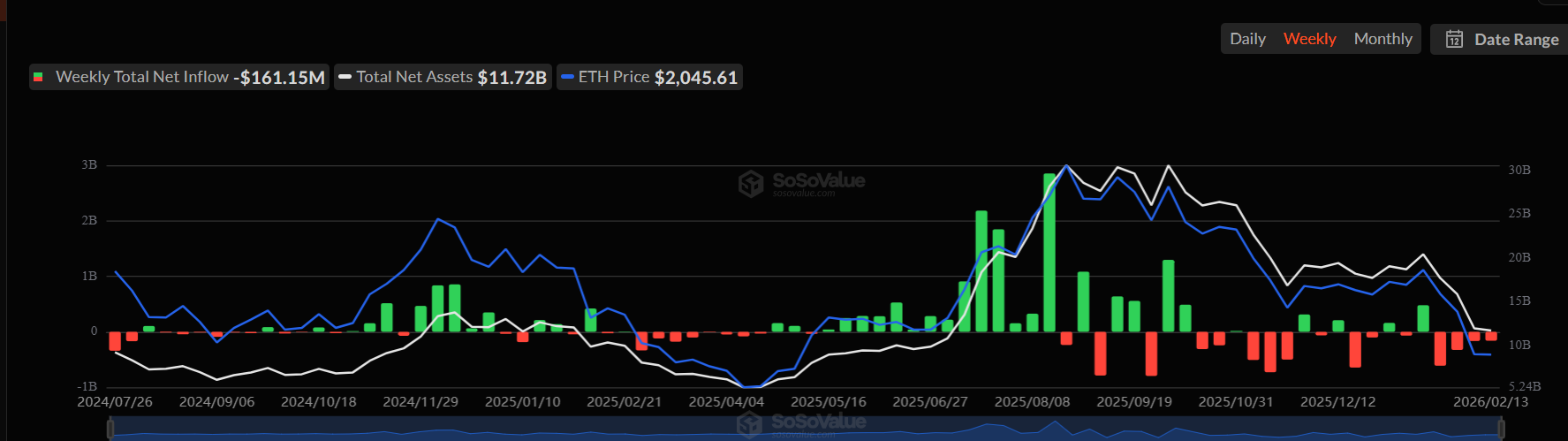 Ethereum Spot ETFs See $161 Million in Net Outflows This Week