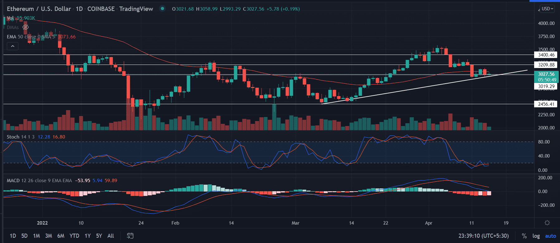 ETH price takes support near the bullish trend line