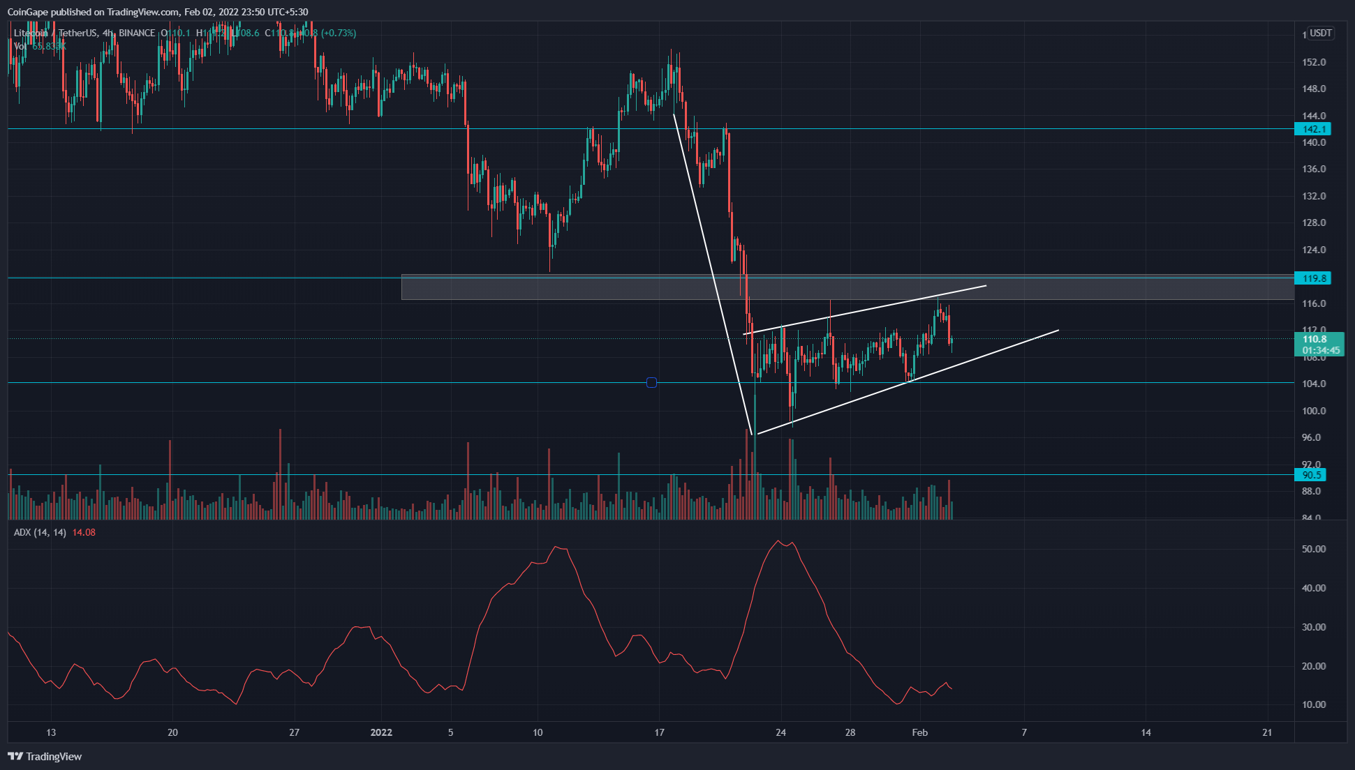 The buyers might take this chance to pump the coin price to a higher level; however, the immediate resistance of $120 exerts intense selling pressure on the bulls. Since last week, the coin price has been wavering between the said levels, creating a narrow no-trading zone.