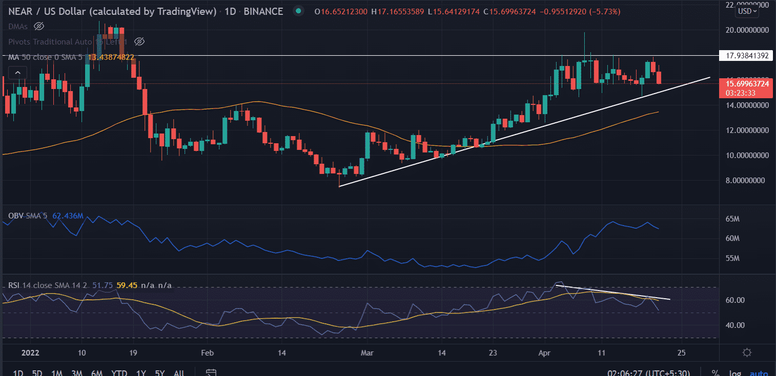 As of press time, NEAR/USD reads at $15.64 with a loss of 5.34% for the day.