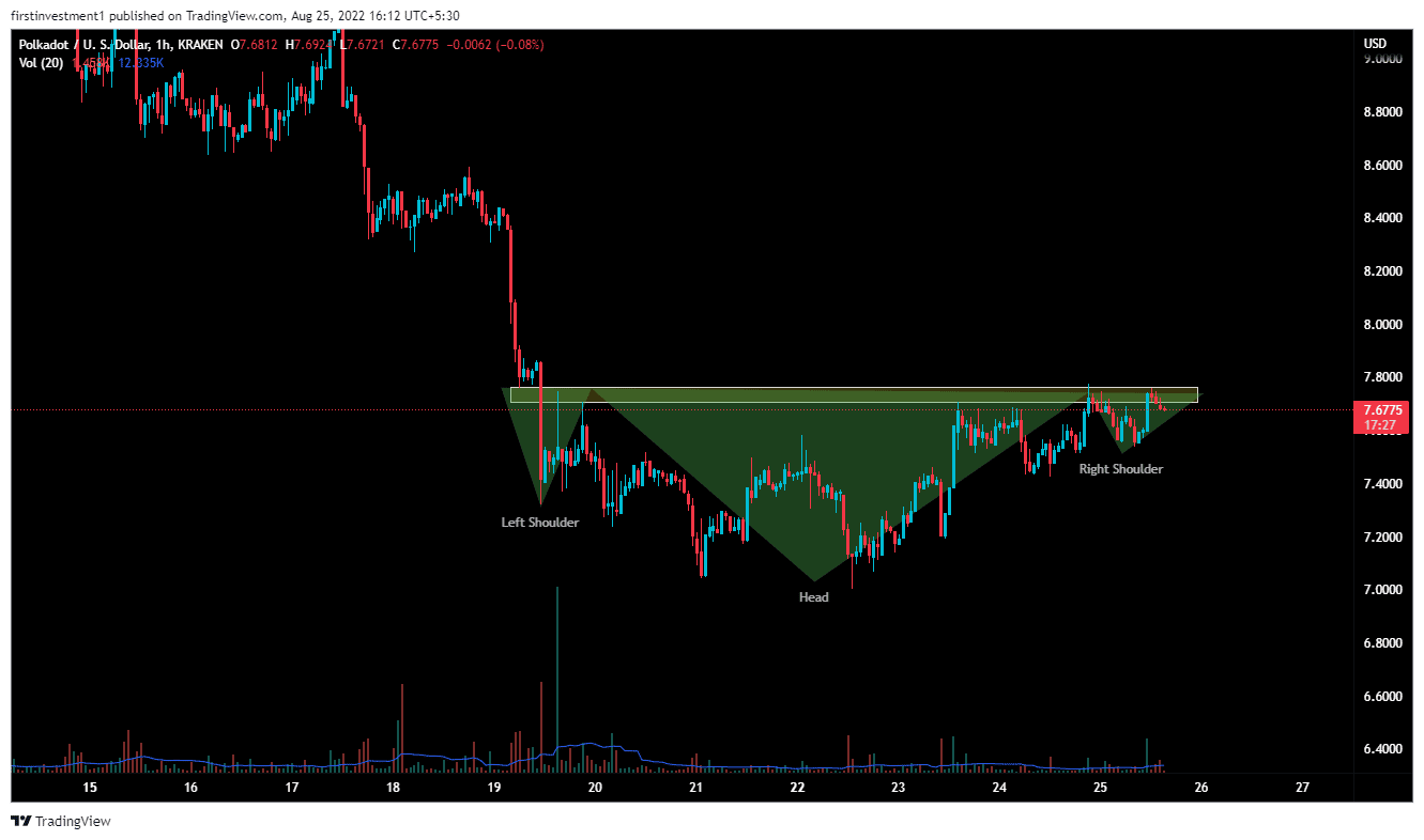 The Polkadot price analysis shows a modest recovery. But, the downside risk remains intact below $8.0. The longer the time remained below the critical level, the more pressure would build up on the buyers. The formation of a bullish hammer on August 22 shows a tug-of-war between bulls and bears.