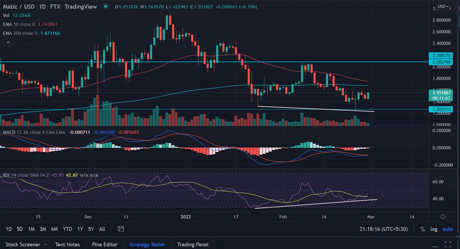 At the time of writing, MATIC/USD is changing hands at $1.48% for the day. The 24-hour trading volume of the 16th largest cryptocurrency held at $991,059,375 with marginal gains of 6% as per the CoinMarketCap.