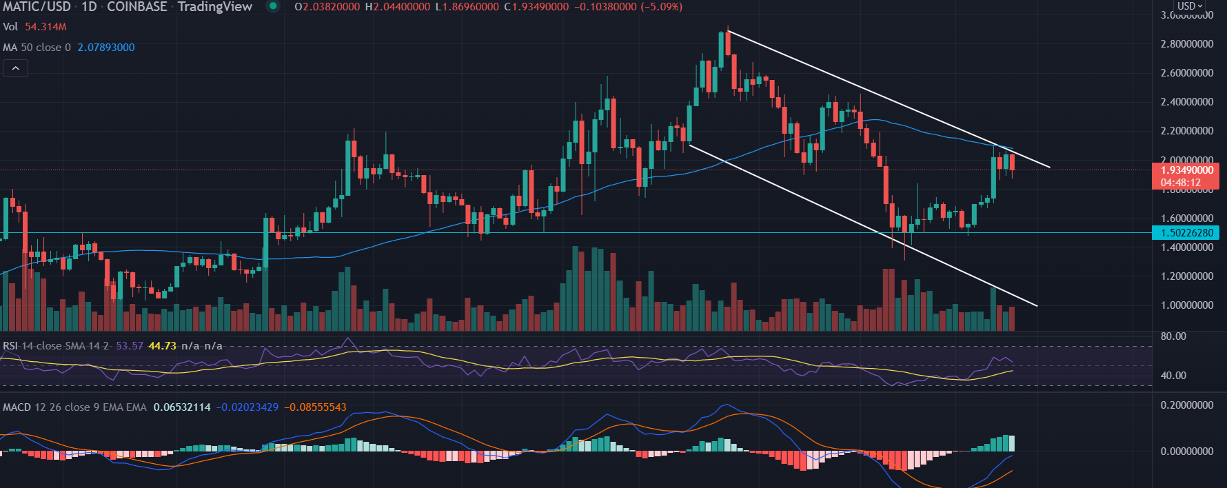 As of printing, MATIC/USD is trading at $1.98, down 3.38% for the day. The current market cap of polygon stands at $14,875,151,119 as per the CoinMarketCap.