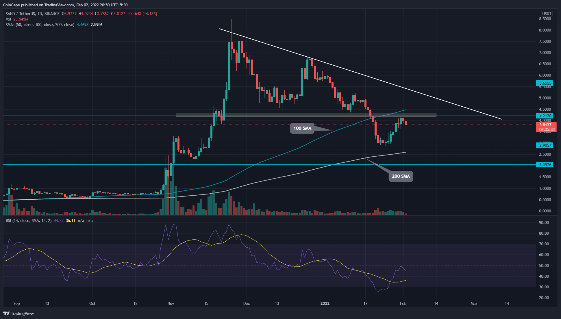 SAND Price Analysis: Sandbox Buyers Struggles To Surpass $4 Resistance