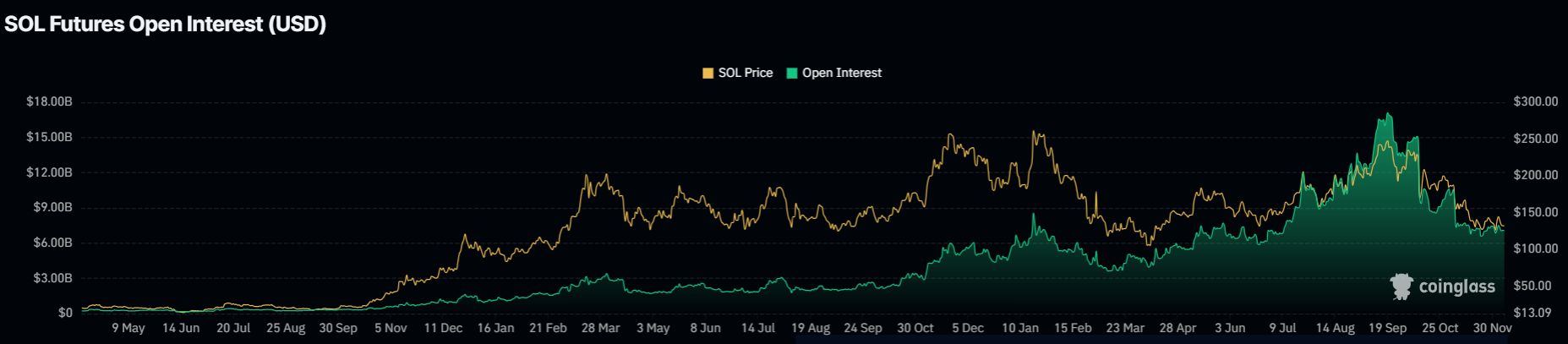 According to CoinGlass, the futures OI of Solana is 7.16 billion, which does not show significant changes over the past 24 hours.