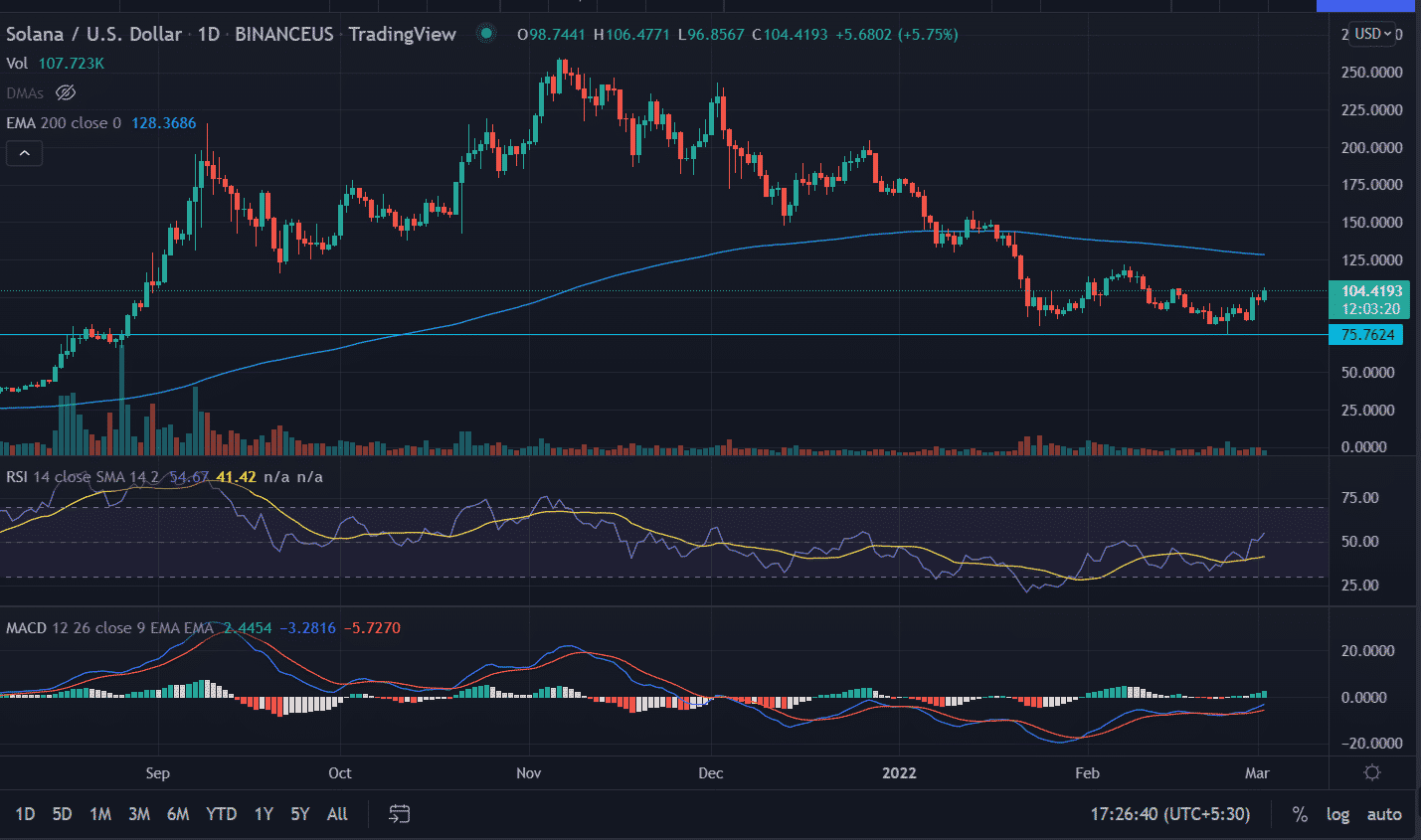 Solana (SOL) price books remarkable gains on Wednesday on improved risk appetite. U.S stocks pointing at higher opening amid the news of second round of negotiations between Russia-Ukraine. However, former escalated attacks as ‘special military operations’ continued for the seventh straight day.