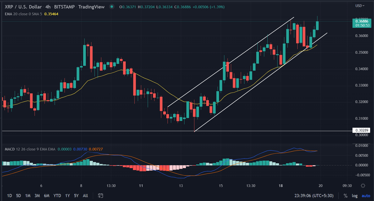 Ripple’s (XRP) price offers a fresh bid near $0.36 extending the previous session’s gains. A broader optimism in the crypto space supported the gains in the asset. However, further confirmation is needed to make fresh long bets.