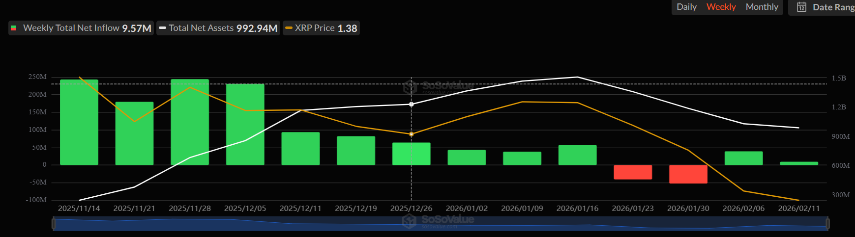The XRP ETF has been the most successful investment instrument due to weekly inflows of about $9.57 million, with interested individuals seeking to get exposure to XRP.