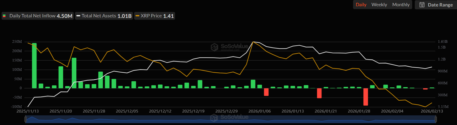 XRP Inflows Surge with $2.52M on February 13