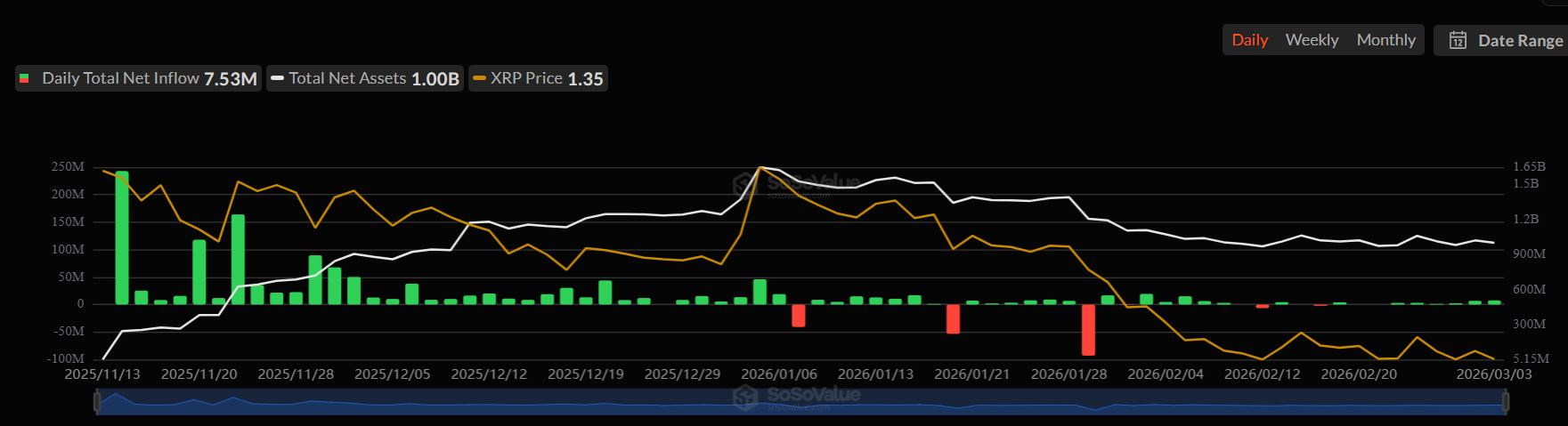 XRP ETF Market Strengthens With Fresh $7.53 Million Inflow