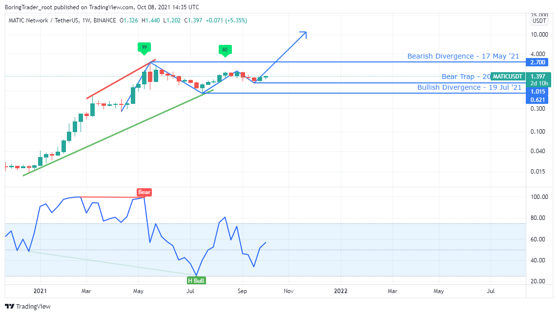 Following a 75% price slump from its ATH, the MATICUSDT found support upon signaling a bullish divergence on 19 July ’21.