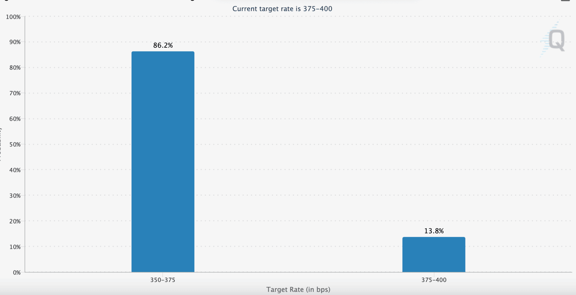 According to the CME FedWatch Tool, traders are currently pricing in an 86.2% probability of a quarter-point rate cut at the December 9–10 FOMC meeting.