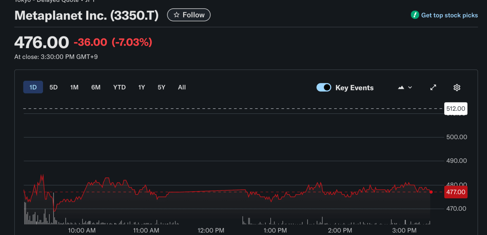 - Metaplanet stock (3350.T) fell roughly 7% following the release of its latest financial report.