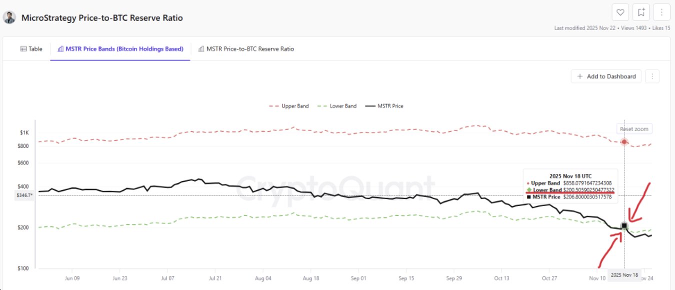 - MSTR has fallen into the lower CryptoQuant Price Band, a zone that shows deep undervaluation.