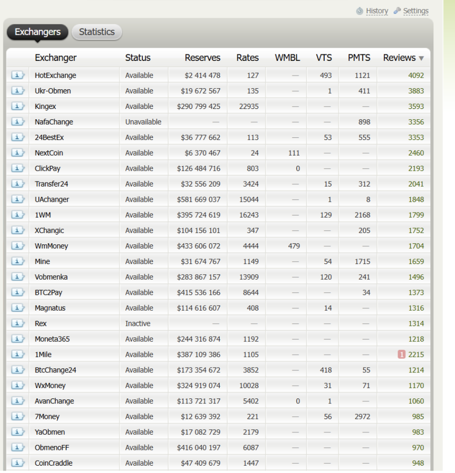 For each Exchanger, BestChange presents data such as the Exchangers’;