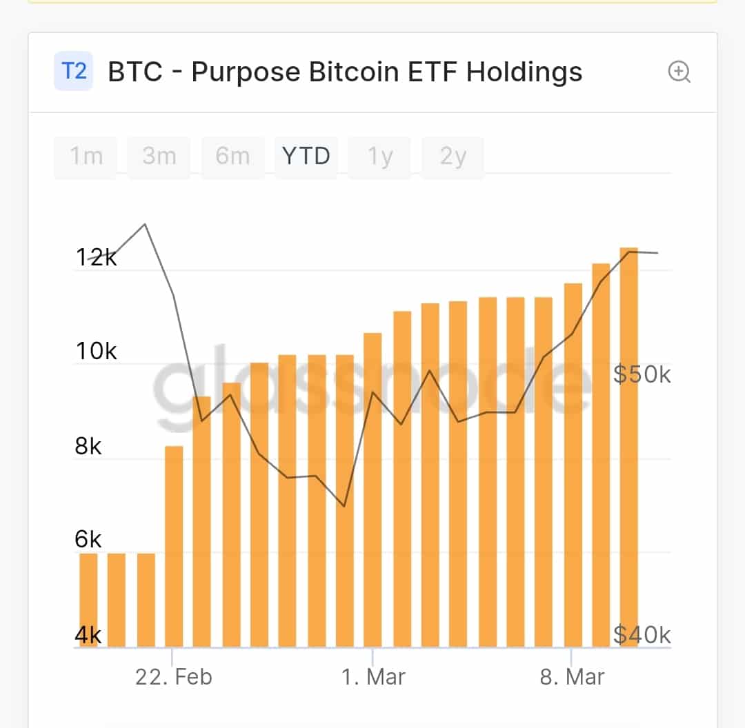 Purpose Bitcoin ETF launched amid growing demand for the top cryptocurrency-backed ETF in the US. The launch was considered a success after it traded over $80 million worth of Bitcoin contracts in the first hour of its launch. The Bitcoin holdings have seen a consistent rise since its launch, reaching the $500 million assets under management towards the end of February.