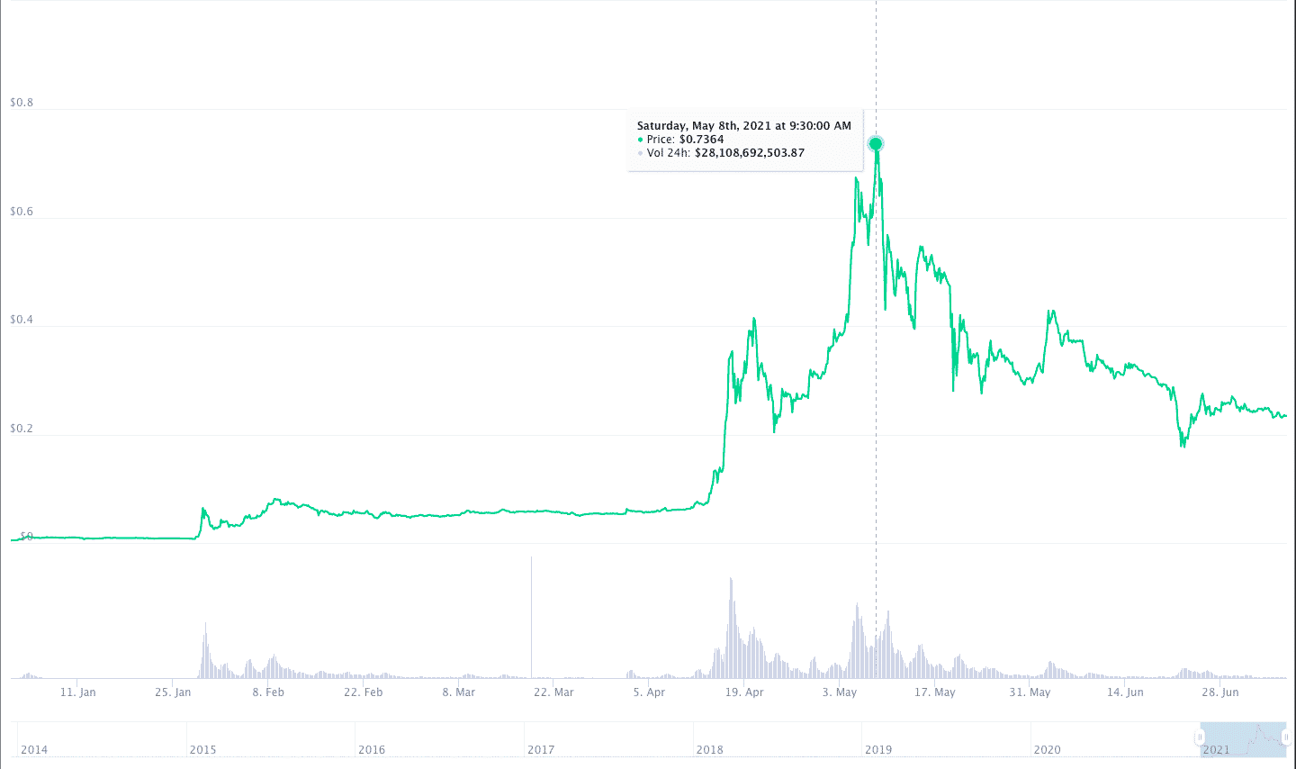 Similarly, following endorsements from Elon Musk retail interest in cryptocurrency Dogecoin (DOGE) spiked and reached an all time high price of $0.73. Dogecoin trading volume at Robinhood were off the charts as Dogecoin entered top 5 cryptocurrencies.