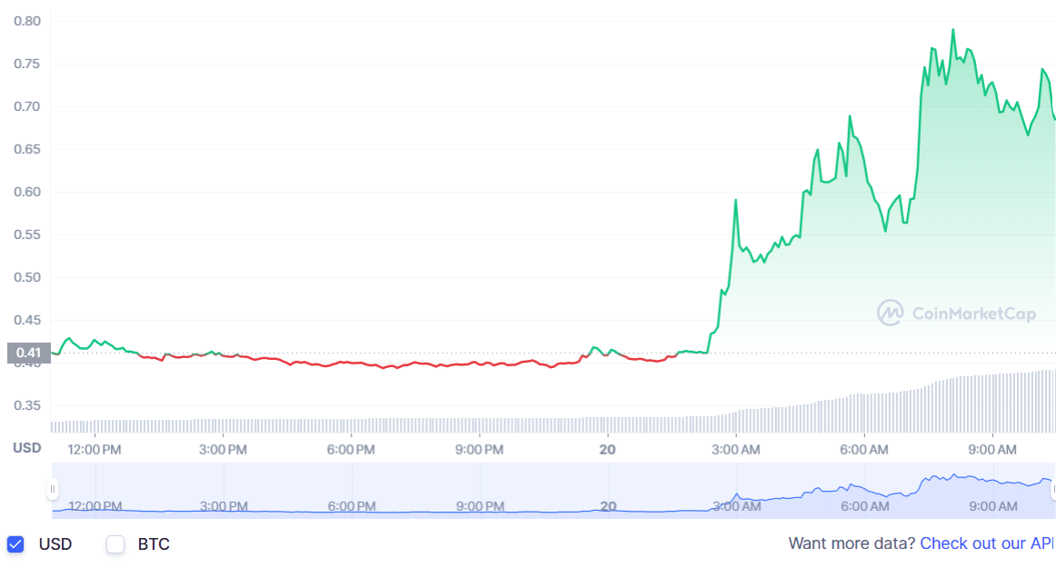 Stacks (STX) is currently ranked the 52nd-largest digital asset by market capitalization, but its price of $0.6831 is having one of the best days out of the top 100 cryptocurrencies. Thus, the allure of the Stacks led to a significant rise in the activity from investors as well. And the altcoin noted a nearly 500% increase in 24-hour trading volume, with Binance, Coinbase, and Kucoin hosting the majority of those trades.