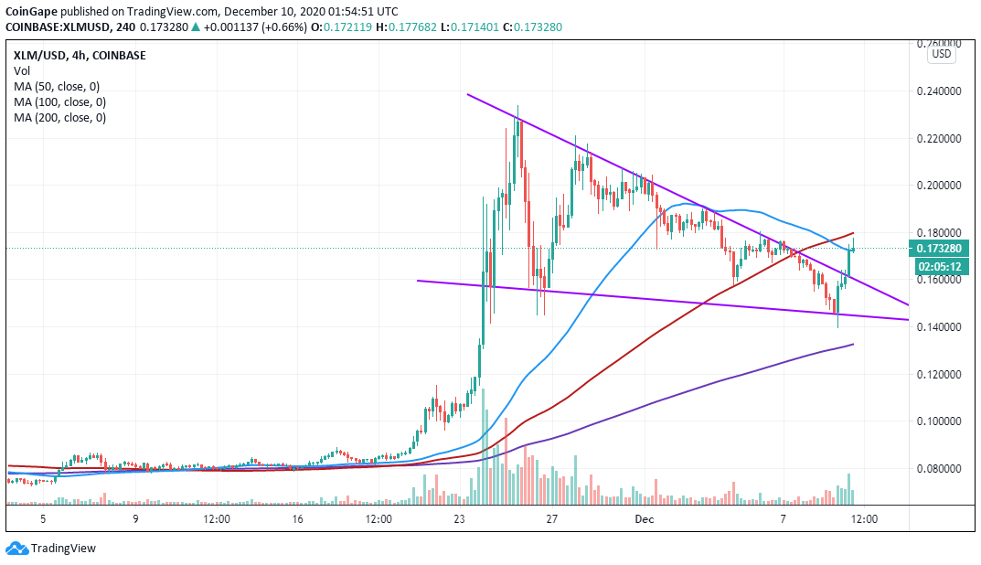 The trendlines formed a descending wedge pattern, which is a highly regarded bullish indicator in technical analysis. A break above the wedge usually hints at a massive rally, with a price target. As for Stellar, a breakout from the chart pattern is likely to send it upwards by 45% to $0.2345.