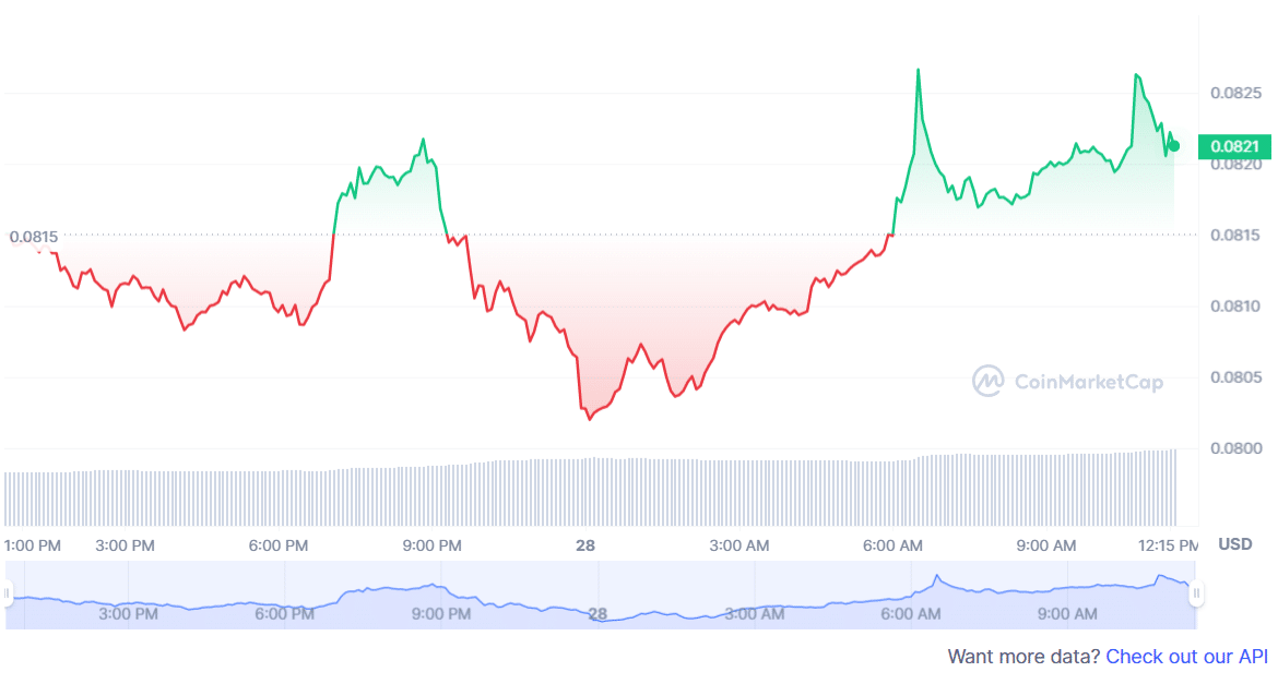 At the time of writing, the DOGE price was trading at $0.086. It is up 0.87% in the last 24 hours and 17.74% in the last 30 days. This gave the coin a market cap of around $10.9 Billion, making it the eighth-largest cryptocurrency by that metric, according to CoinMarketCap.