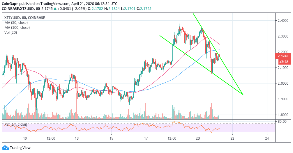 - XTZ/USD reaction to a falling wedge pattern could breakout in a rally hitting levels between $2.50 and $3.00.
