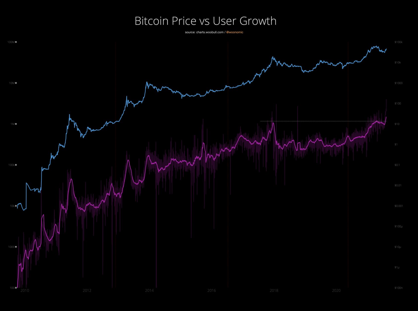 Popular market analyst willy Woo has some very interesting data points to present. He notes how the network activity on the Bitcoin blockchain is picking up once again. Woo mentions that the number of users on the Bitcoin blockchain is growing faster than ever before.