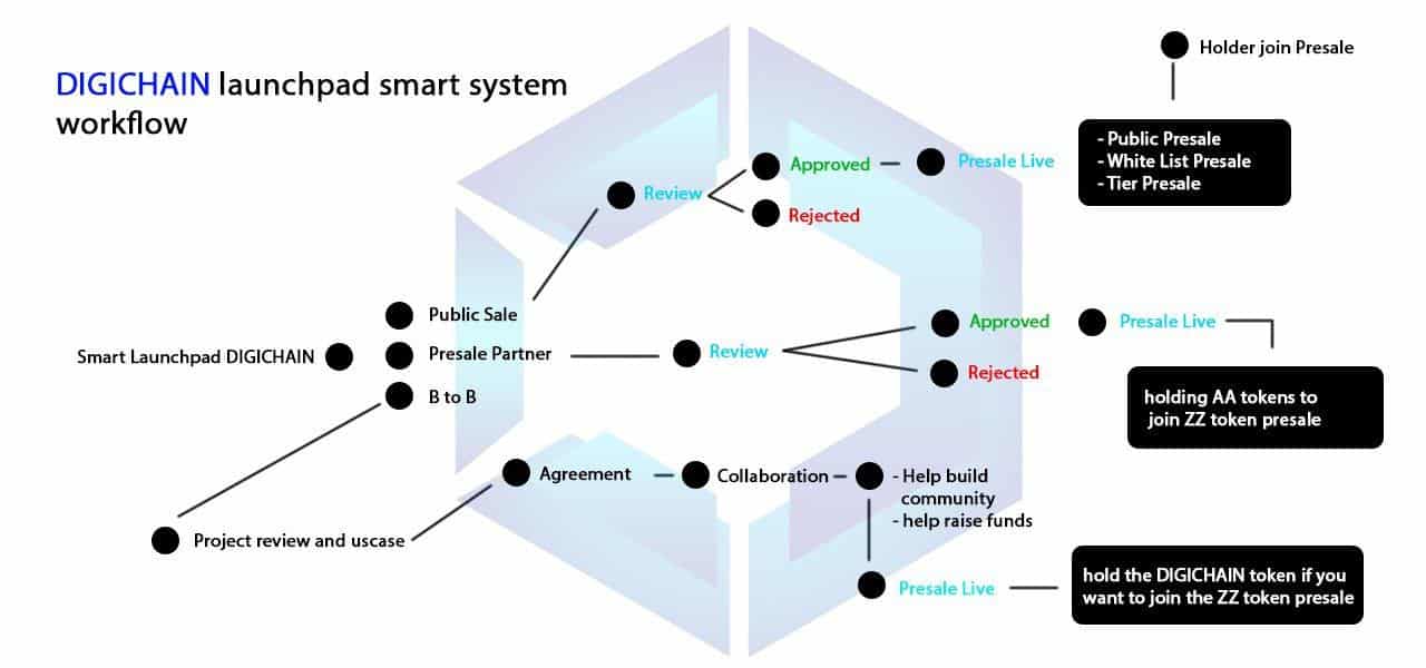 In addition, there are several unique features of Smart Launchpad, according to information obtained from the digichain technology team, that this Smart Launchpad has regulations for the B2B category but the details of the regulations are not announced to the public because they are very confidential and only published to developers who will partner.