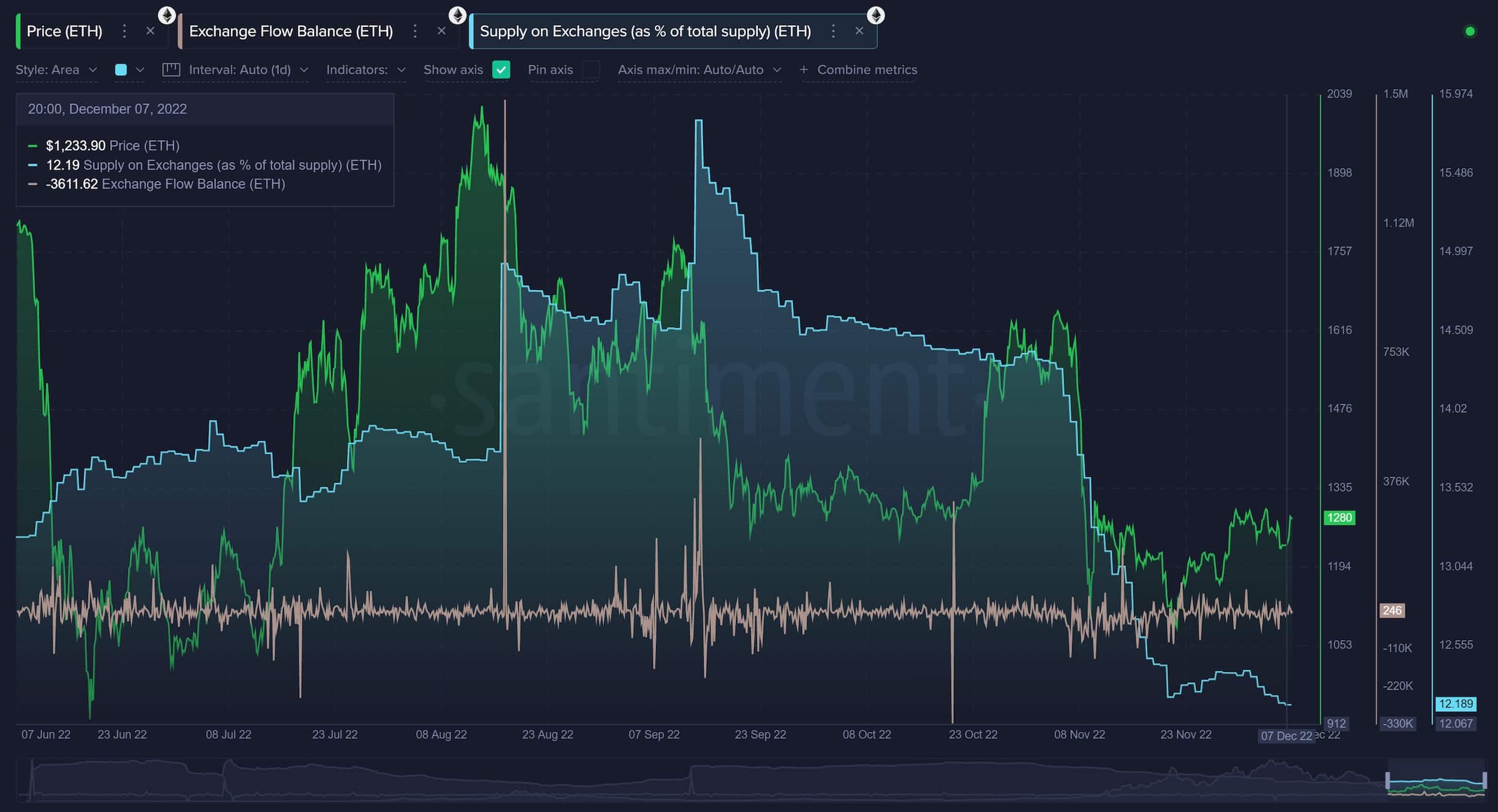 There’s been a 75% drop in the ETH supply on exchanges in the last 13 months. However, if all these ETH start coming to exchange, it could trigger more sell-offs. But indicators for the same are not round the corner.