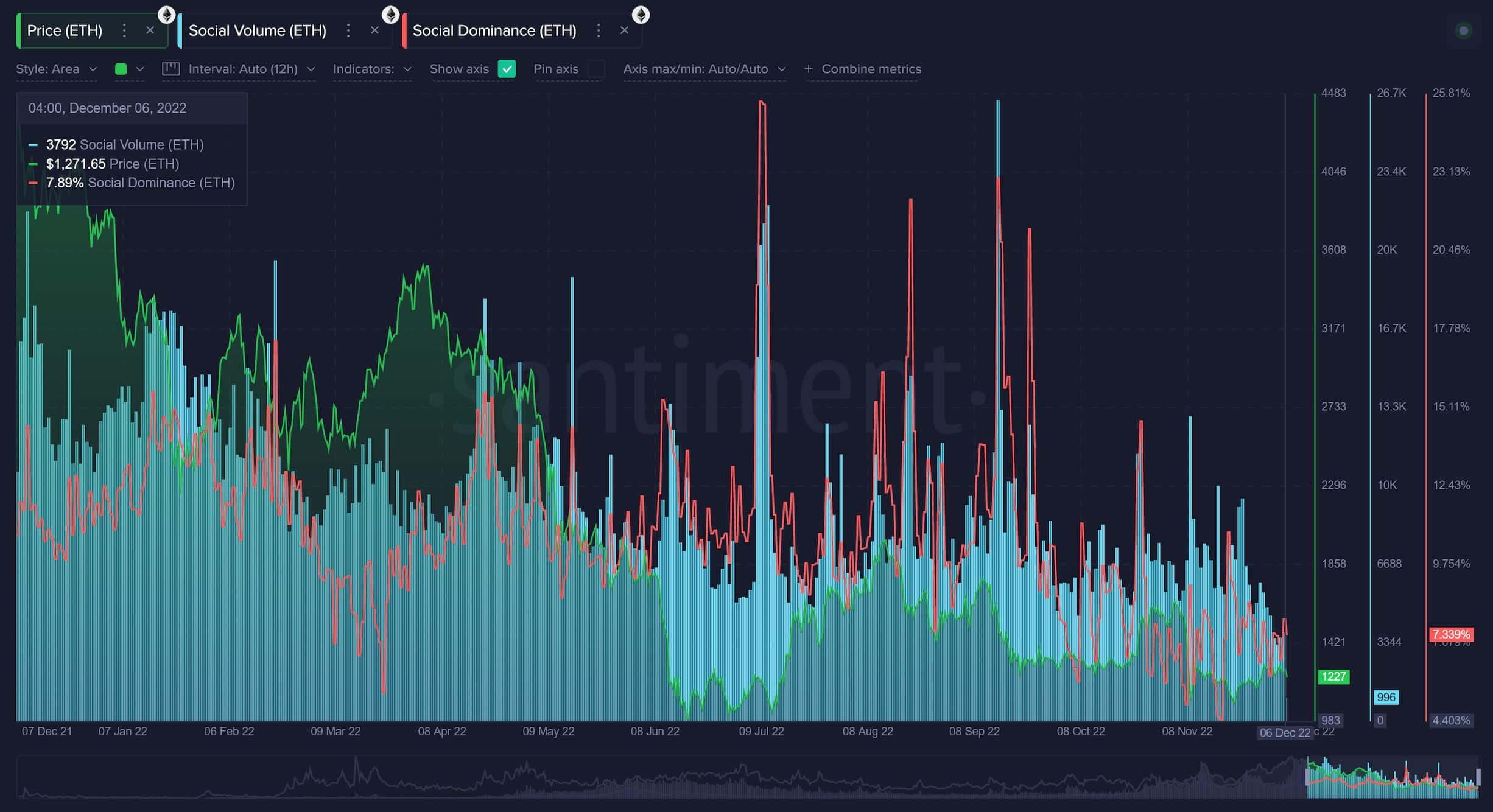 Since the Merge event in mid-September 2022, the discussion around Ethereum has been on a decline. Since late October 2022, the discussions around Ethereum have dropped to the lowest percentage among the top 100 assets. On-chain data provider Santiment notes: