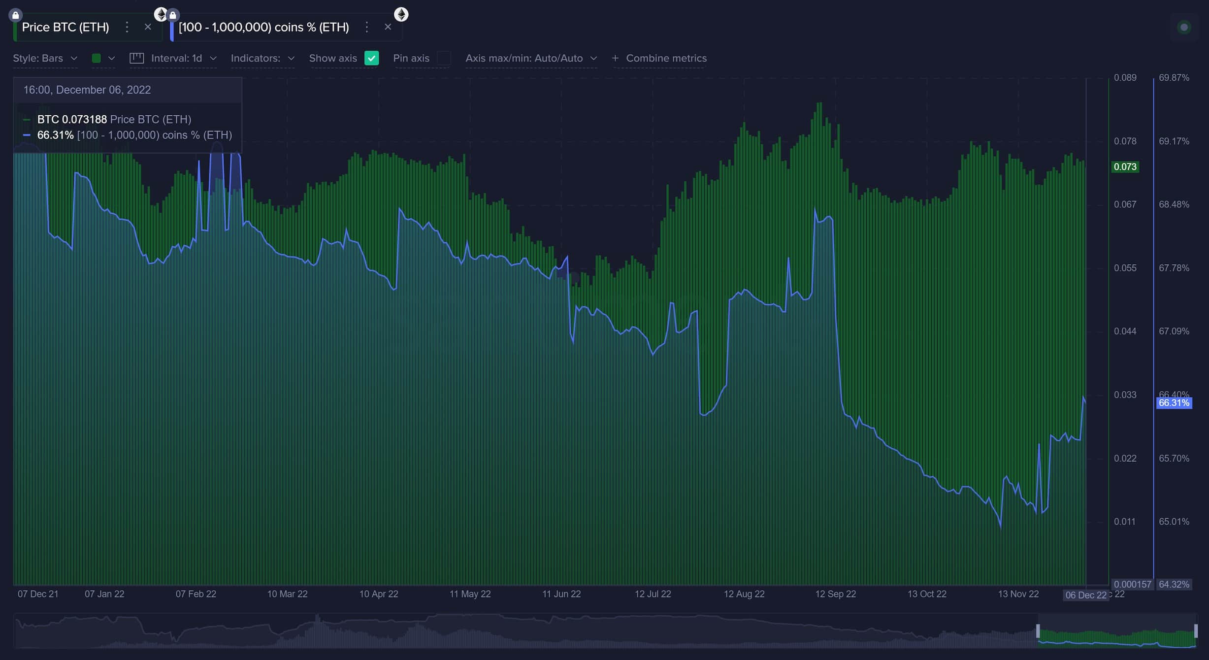 The on0-chain indicators hint at new interesting developments. Over the last year, the Ethereum shark and whale addresses have been shedding much of their supply. But since the FTX collapse last month, there’s an interesting trend reversal observed.