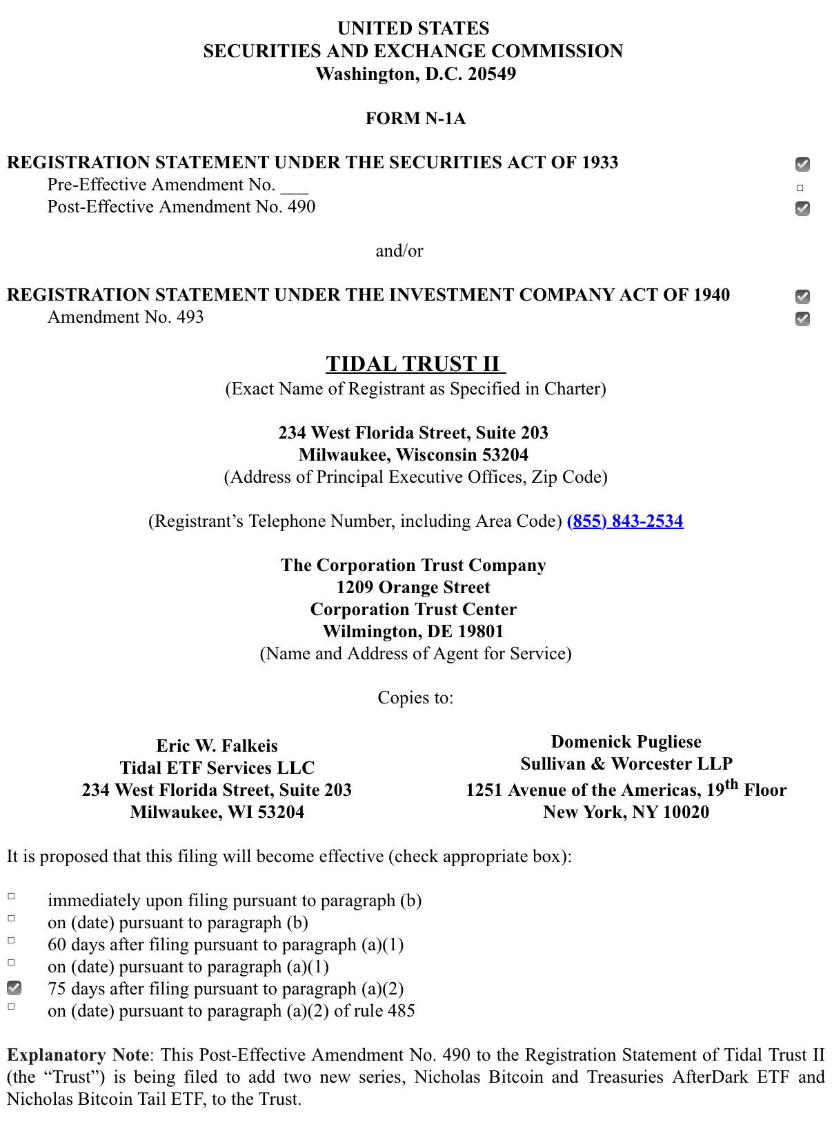 Tidal Trust has filed with the SEC for its proposed Bitcoin AfterDark ETF product. It is an ETF that would hold the coin only during non-trading hours in the United States. This filing also seeks permission for two other BTC-linked products managed with Nicholas Wealth Management.