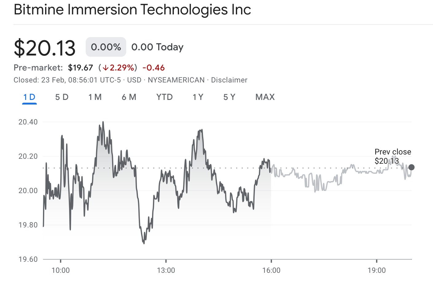 It is second to Strategy, which bought 592 BTC as disclosed today. According to Fundstrat data, BMNR stock traded an average daily dollar volume of $0.7 billion over five days ending February 20, 2026. Today, in pre-market trading, BMNR stock is trading at $19.67, down by 2.29%, or -0.46.