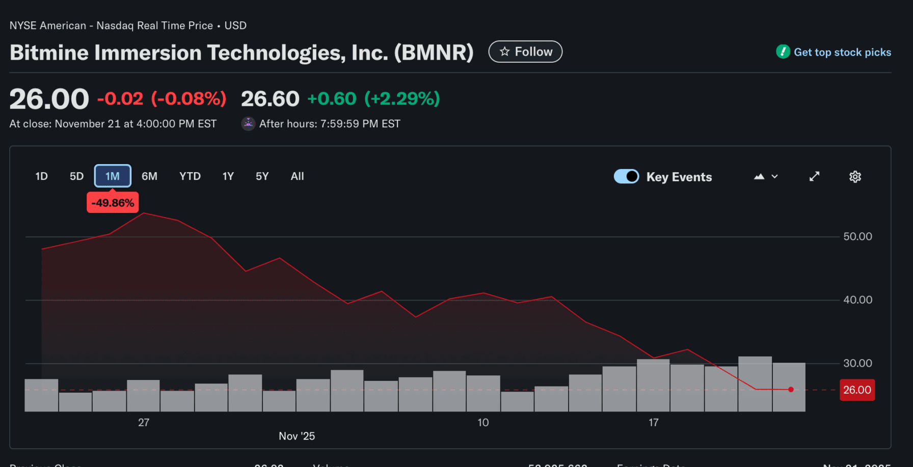 This staking plan has arrived at a particularly difficult moment for the firm. It has about $4 billion in unrealized losses left from the crypto crash. The shares of BMNR have also fallen 84% from their high back in July. It has erased the premium that was once attached to its net asset value.