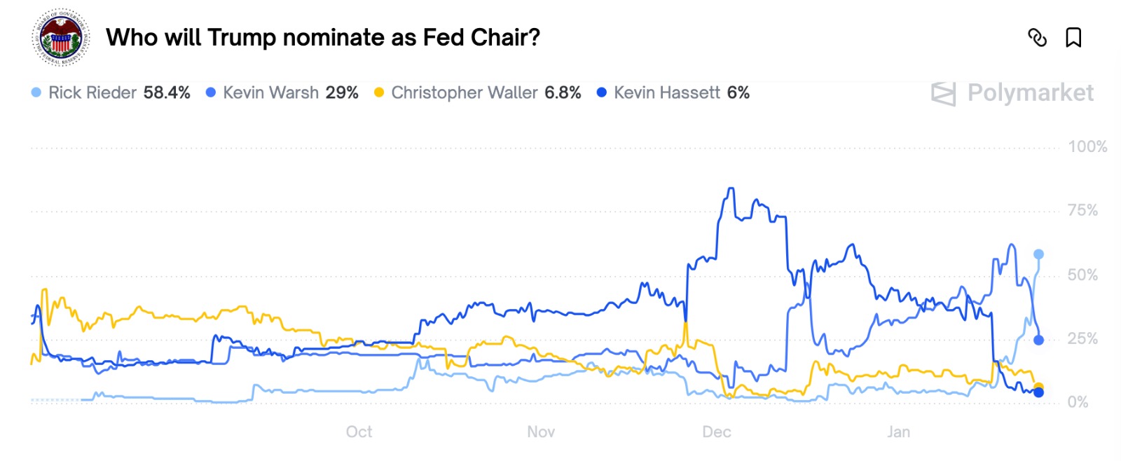 - Rick Rieder leads Fed Chair odds, with reports that Trump could announce his nomination next week.