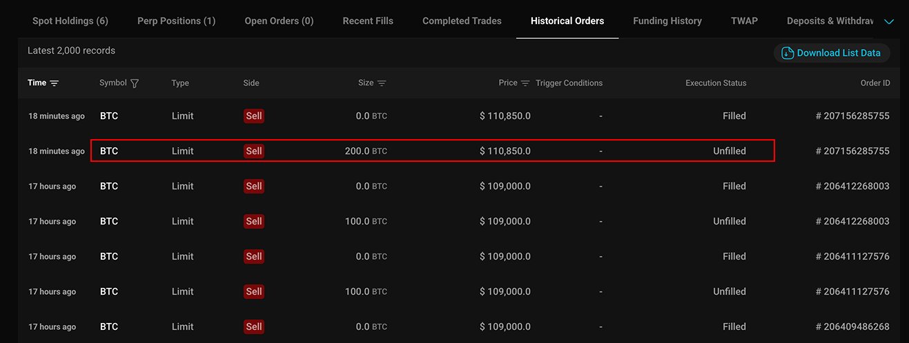 Data shows that the so-called Trump insider whale has added another 200 BTC (valued at about $22.1 million) to their short position. This brought their total to 900 BTC, worth roughly $99.6 million. The trader’s entry price stands at $109,521, with a liquidation threshold near $141,072 and a floating loss of just over $1.1 million.