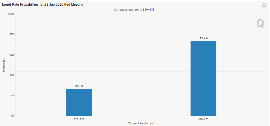 CME FedWatch data shows that the rate cuts have remained unchanged amid the U.S. jobs data release. There is currently a 27% chance that the Fed will lower rates by 25 basis points at the January FOMC meeting.